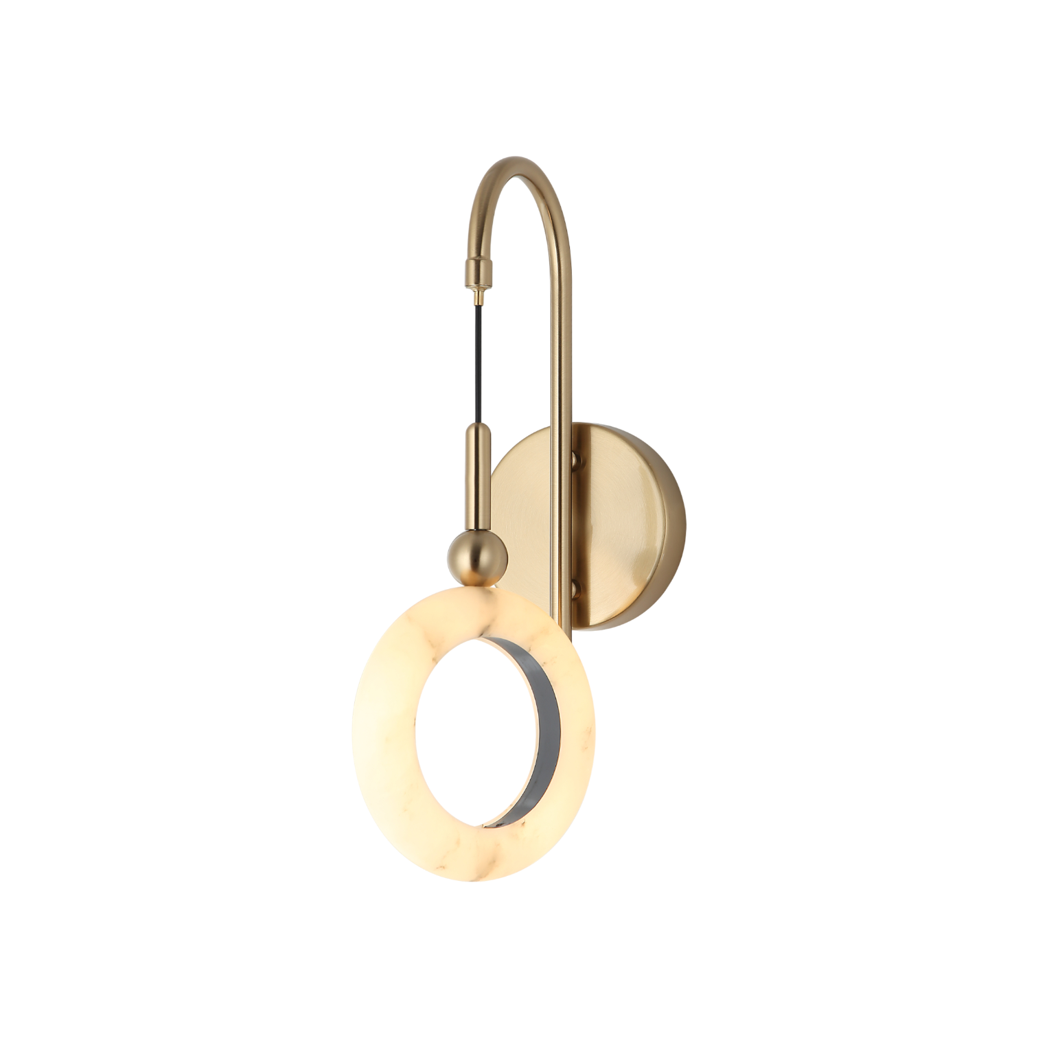 The LUSTRA RING Wall Sconce combines elegant design with soft illumination, featuring a distinctive alabaster ring that diffuses light evenly for a warm, inviting ambiance. Ideal for enhancing hallways, living spaces, or bedrooms, this sconce delivers both functional lighting and a sophisticated focal point to complement modern and classic interiors. Crafted for durability and timeless appeal, it is an expert choice for refined lighting solutions.