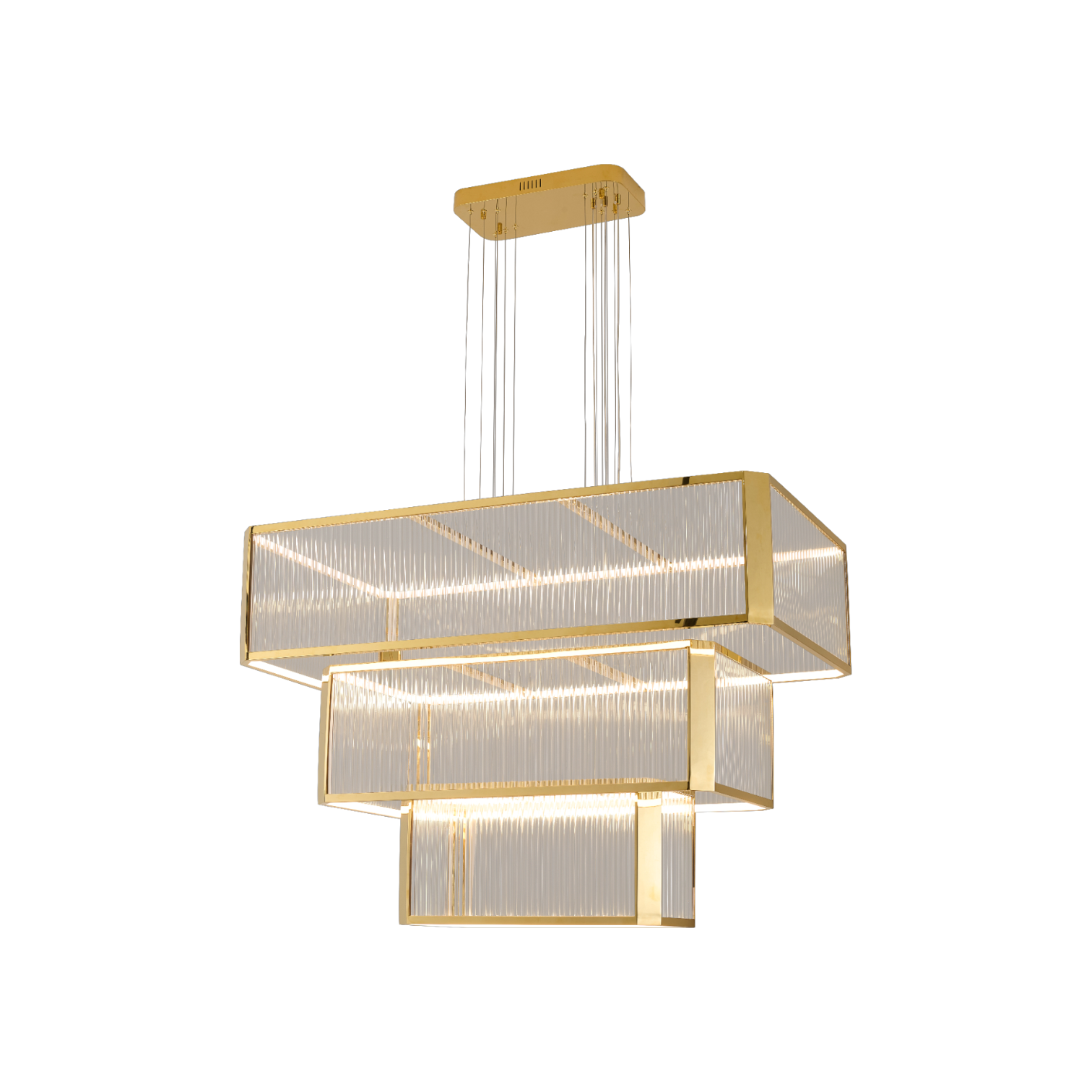 The LUSTRA LINEAR 47" chandelier features a stylish gold finish and a unique three-layer design. It includes energy-saving LED lights that provide bright, even illumination. Perfect for adding a modern touch to dining rooms, entryways, or living areas, this chandelier is both attractive and functional.
