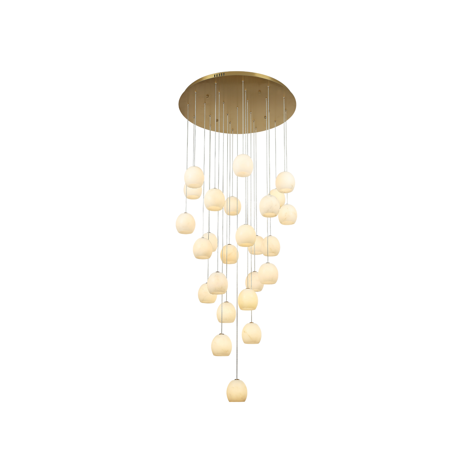 The NIVORA 32" ROUND lamp features ALBERSTOR G9 bulbs and adjustable wires, allowing for customizable height to suit any space. Its sleek round design combines modern aesthetics with functional lighting, making it an expert choice for both residential and commercial interiors seeking precise illumination and style.