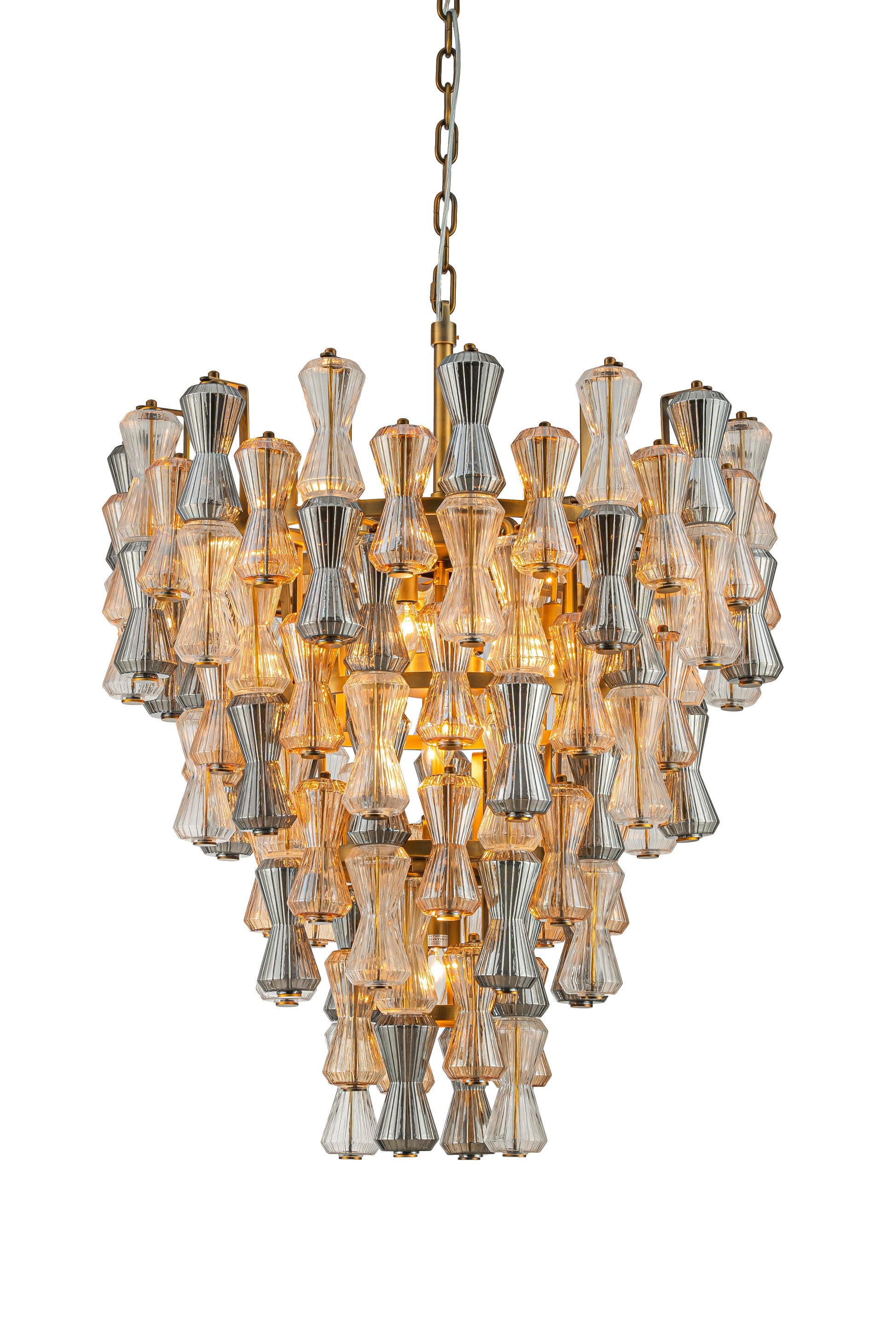 - Description: Vega 35" Multi Color. Aged Brass Finish + Clear & Amber & Smoke Mix Glass 21 x E12 Max 40W